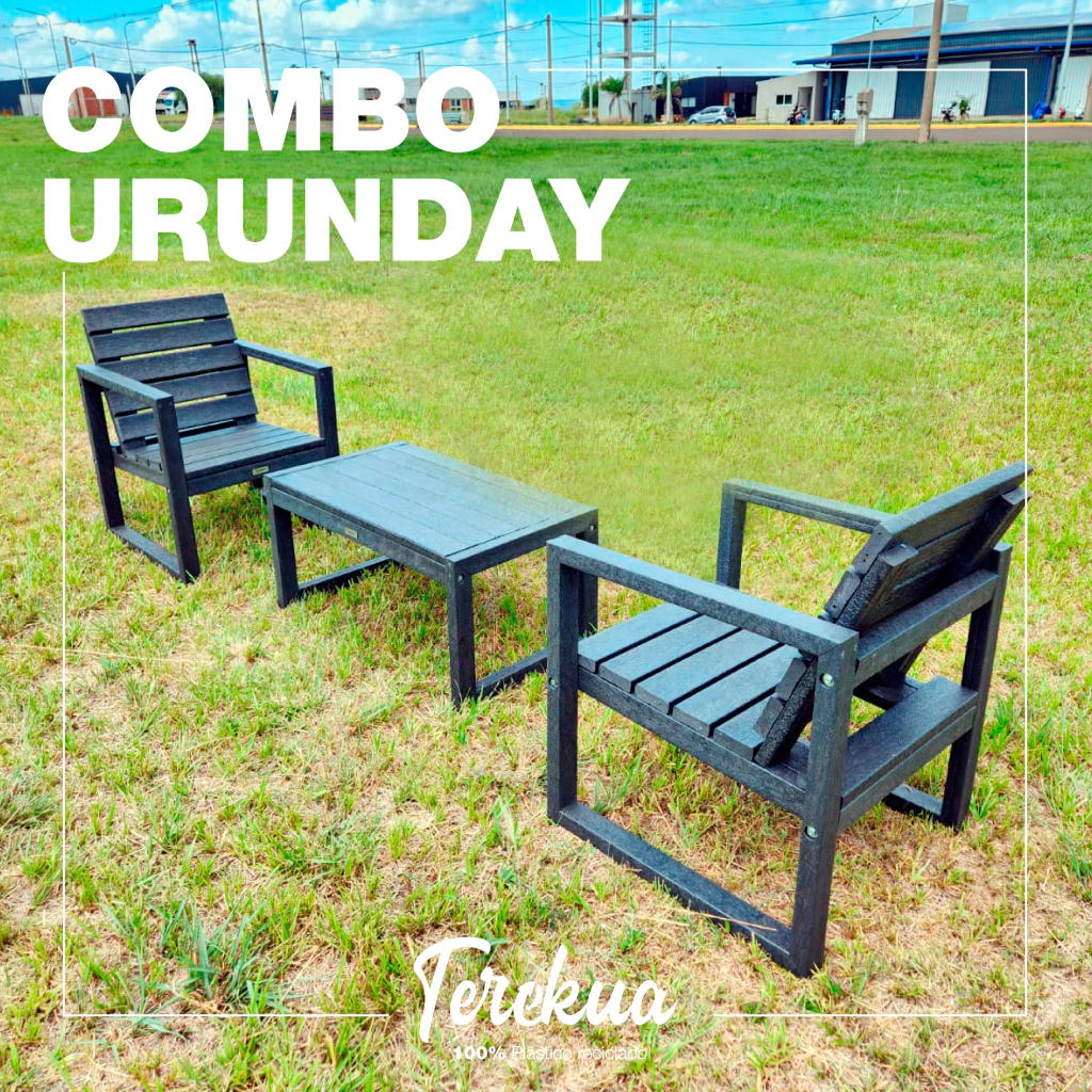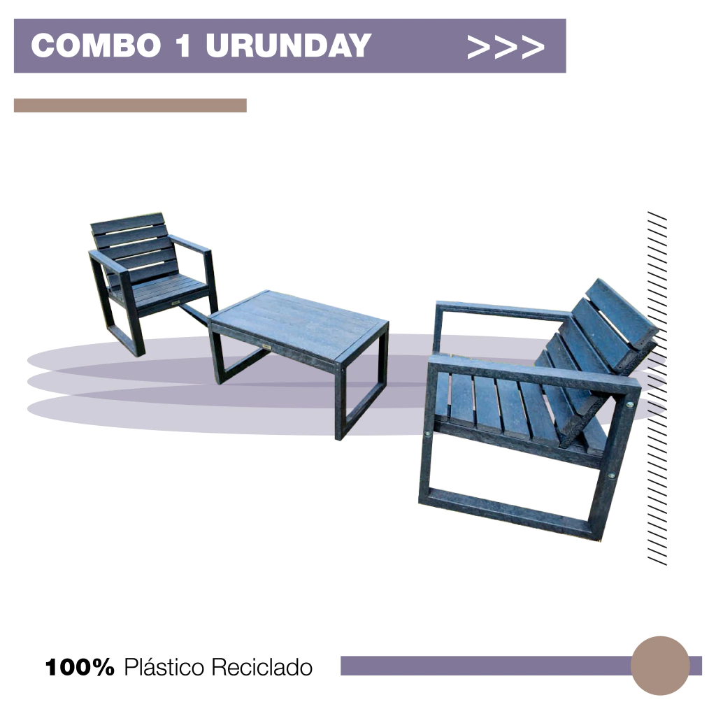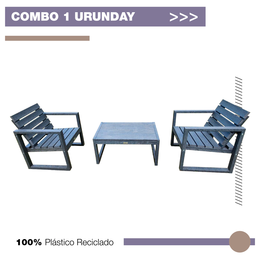 Transforma tu espacio con el Combo 1 Urunday, una elegante combinación de sostenibilidad y diseño. Este conjunto incluye dos sillones Urunday de 1 cuerpo y una mesa ratona Urunday, todos elaborados al 100% con plástico reciclado, rindiendo homenaje al majestuoso árbol Urunday de Misiones. Perfecto para cualquier ambiente, este combo ofrece durabilidad, estilo y un fuerte compromiso con el medio ambiente.